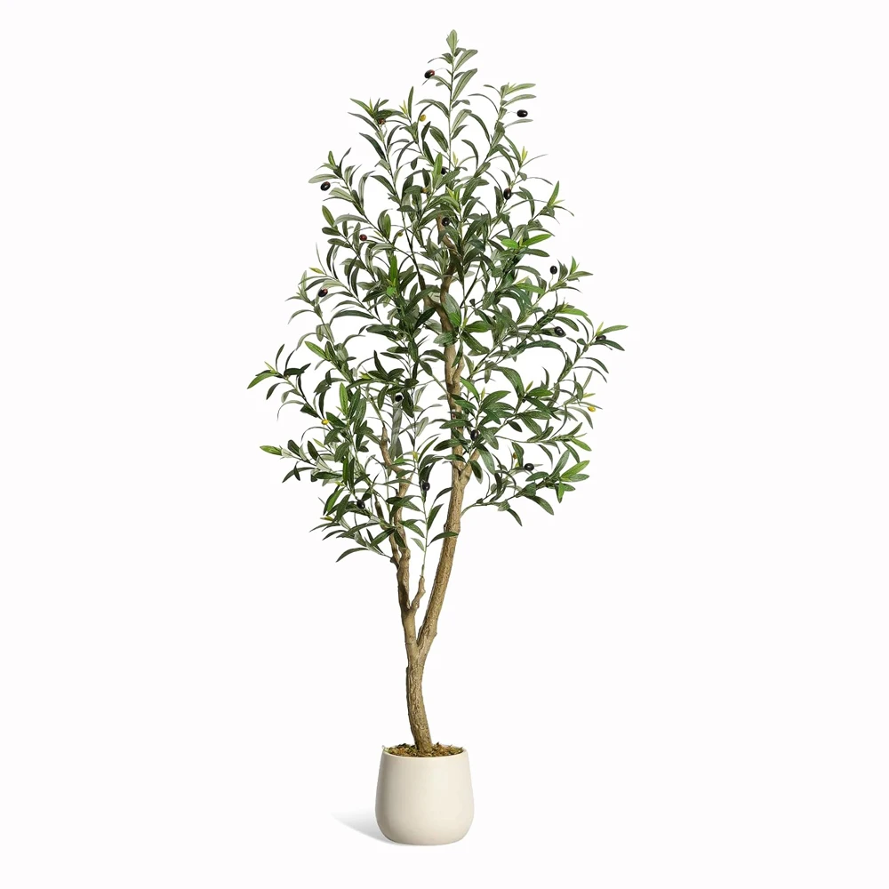 Designed for modern living, this artificial olive tree requires no watering, pruning, or sunlight, offering a hassle-free way to enjoy greenery all year round. Its durable construction and lifelike branches create a full, elegant look that enhances living rooms, offices, entryways, and even covered outdoor areas. Complete with a sleek planter, this floor-standing decorative tree blends effortlessly into contemporary, minimalist, and coastal interiors. Whether used at home or in commercial spaces like hotels and events, it adds height, texture, and a refined natural touch to any environment.