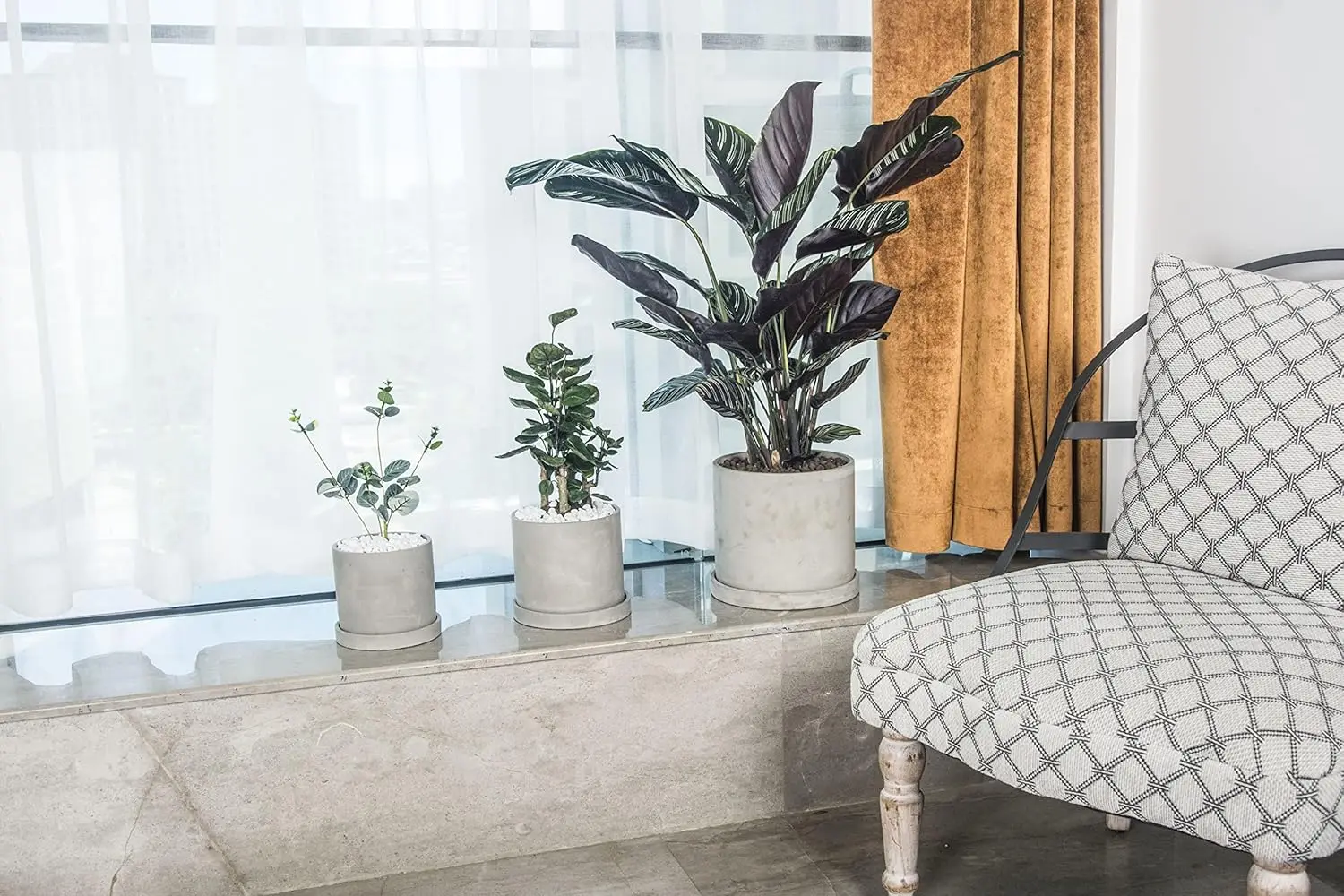 Whether styled on a shelf, tabletop, windowsill, or patio, this modern concrete planter adds structure and elegance to any plant corner.